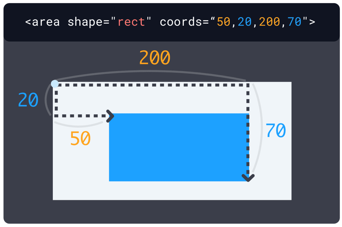 例:<area shape="rect" coords="50, 20, 200, 70">